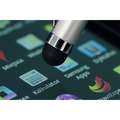 Długopis z końcówką przystosowaną do ekranów dotykowych. Korpus wykonany z aluminium, skuwka z metalu. Wkład w kolorze niebieskim. Posiada obrotowy mechanizm włączania.
